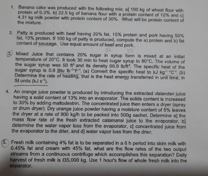 1 Banana Cake Was Produced With The Following Mix Chegg Com